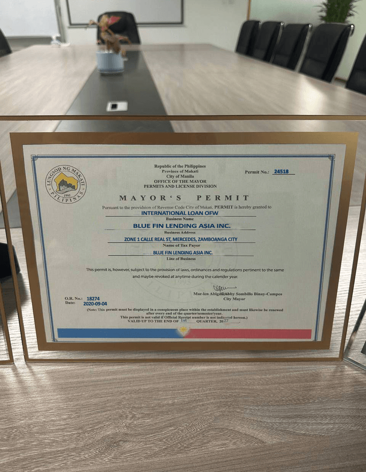 Blue Fin Lending Asia Inc, is fully registered and compliant with all relevant government agencies, ensuring our business operates legally and transparently to serve our clients with trust and integrity.